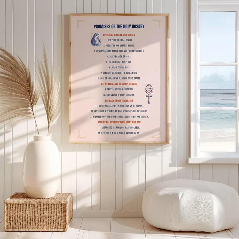 Arte imprimible del Rosario – Póster Promesas del Santo Rosario