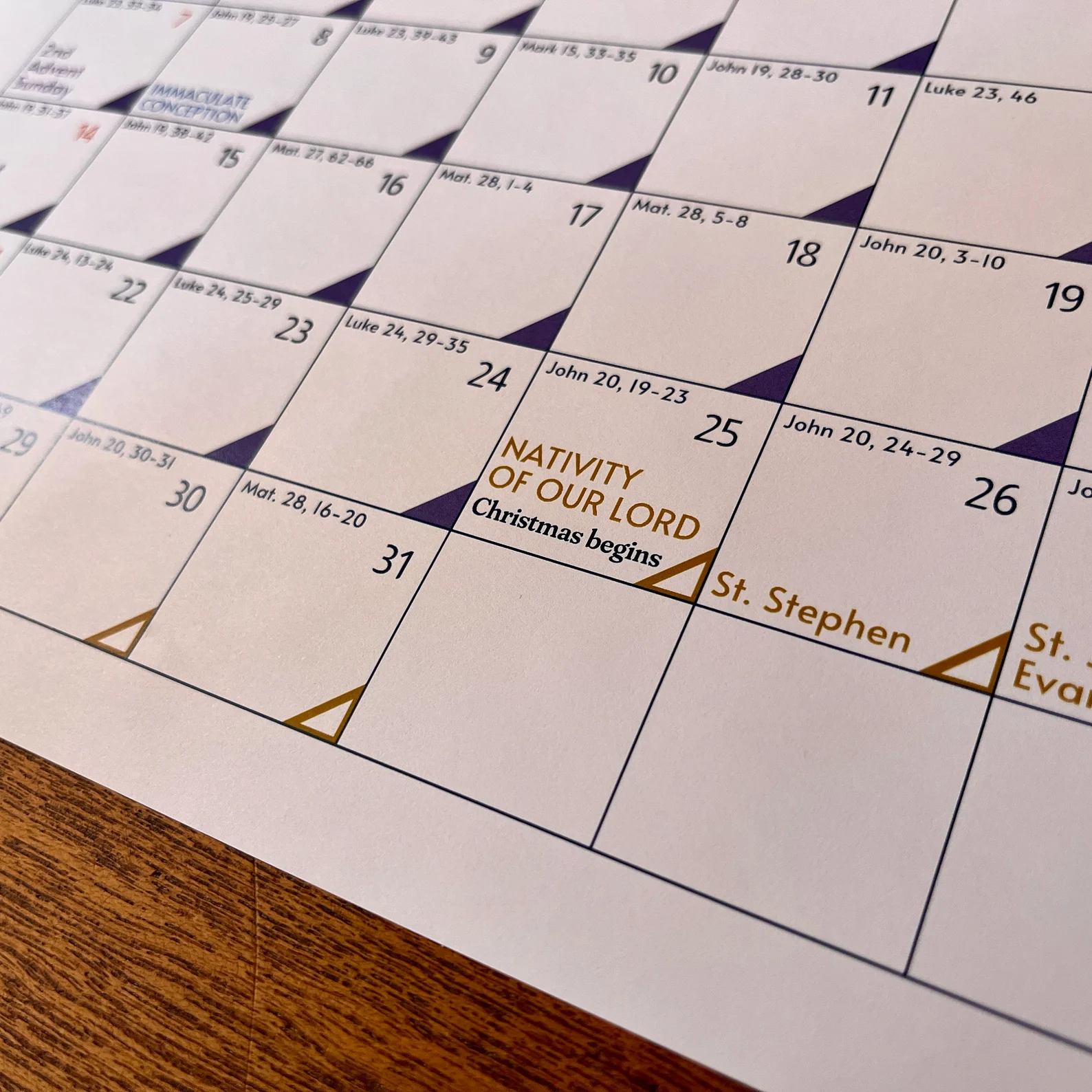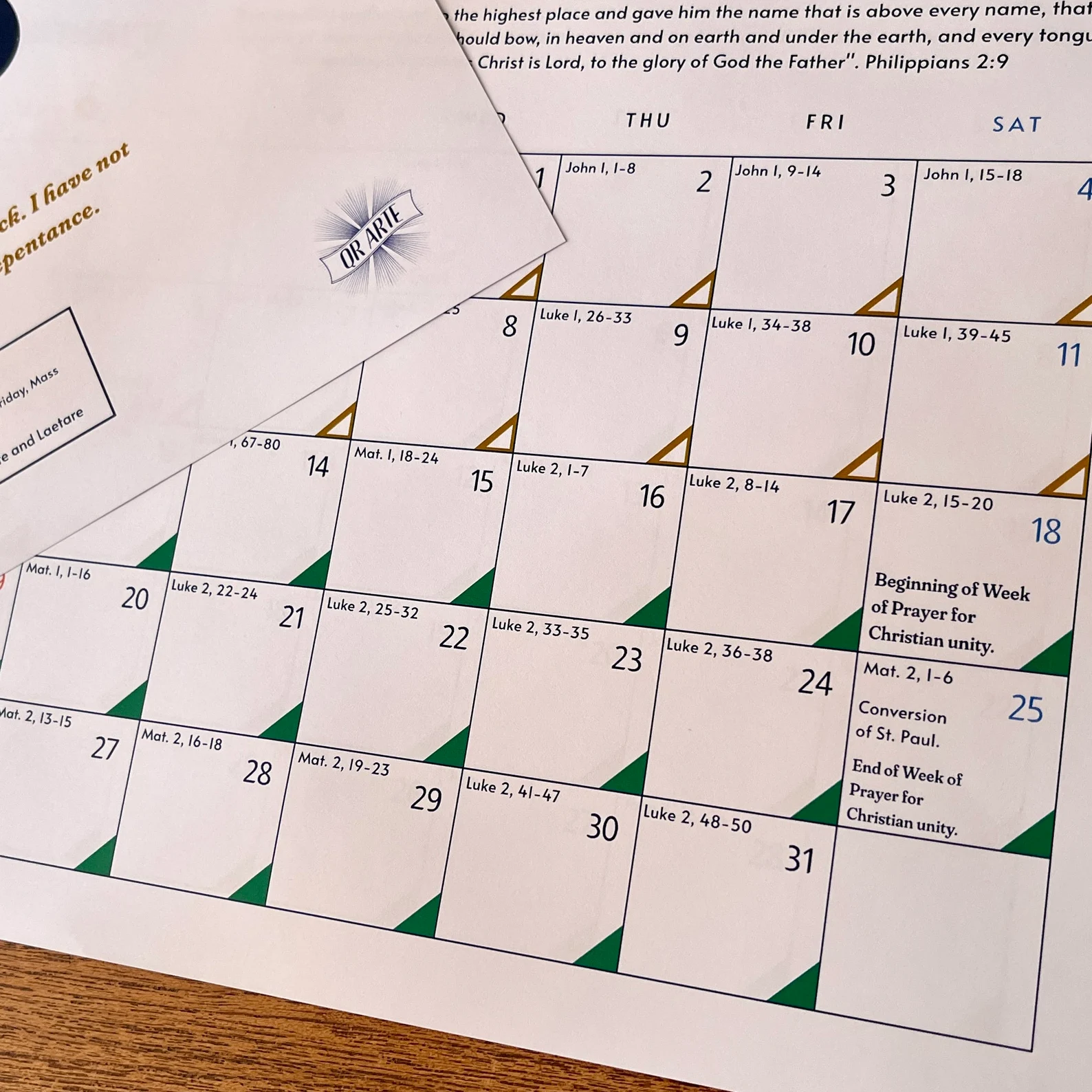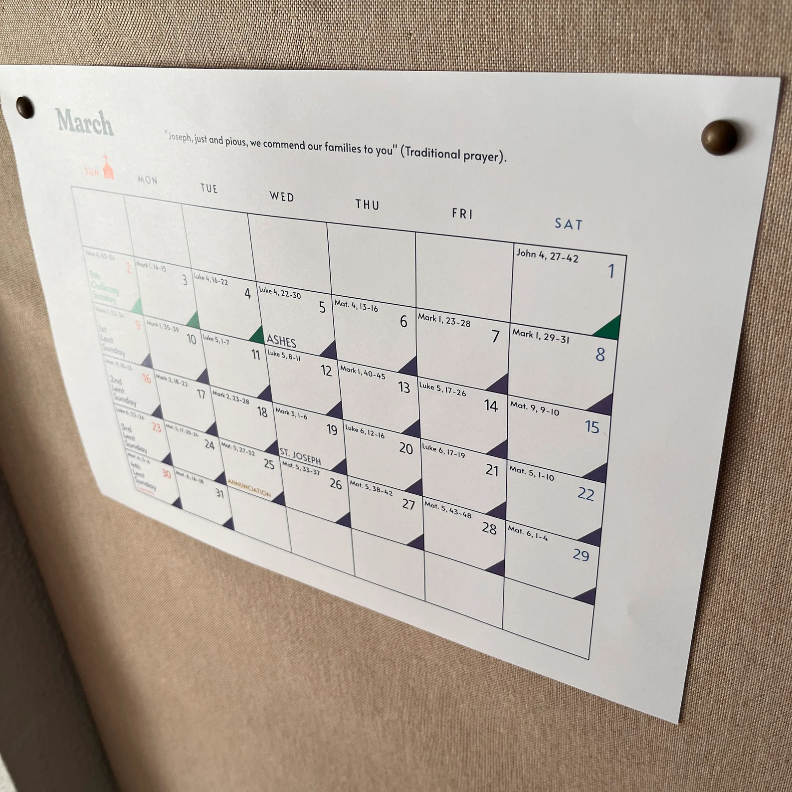 Calendario católico imprimible para el Año Santo 2025. Una página por mes. ¡Mantén siempre el momento litúrgico del año cristiano! Cuelga o encuaderna las trece páginas de este calendario y disfruta sabiendo si estás en Adviento, Tiempo Ordinario, Cuaresma… Recuerda los eventos más importantes del cristianismo. He añadido una cita del Evangelio para cada día del año, tomada del libro antiguo que puedes ver en las fotos. Es una forma de leer el Nuevo Testamento a diario, meditar en él y fortalecer tu fe.