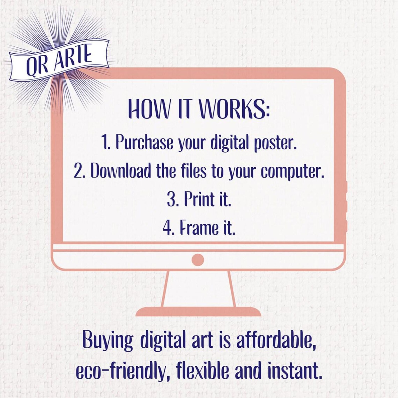 Tras realizar el pago, tendrá acceso instantáneo a archivos JPG de alta calidad (300 ppp) en varios tamaños. No se enviará ningún artículo físico.