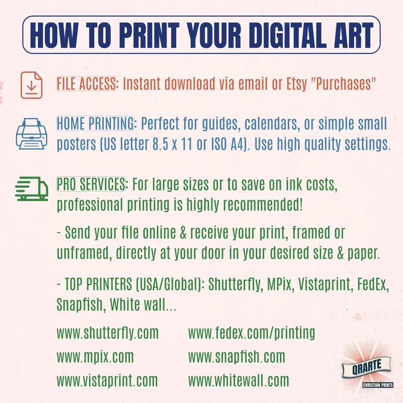 – Tenga en cuenta que este es un producto digital para que el comprador lo imprima y enmarque como desee, no recibirá ningún artículo físico.