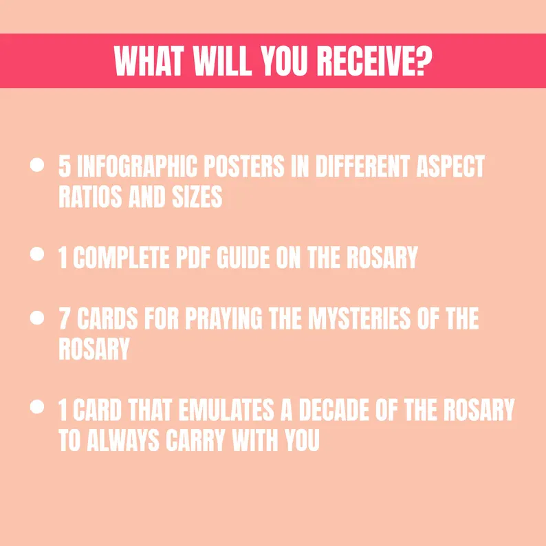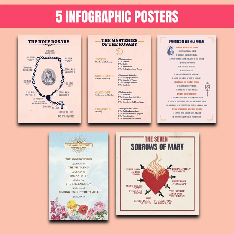 Paquete digital de oración del Rosario católico / Conjunto de pósteres infográficos y guía