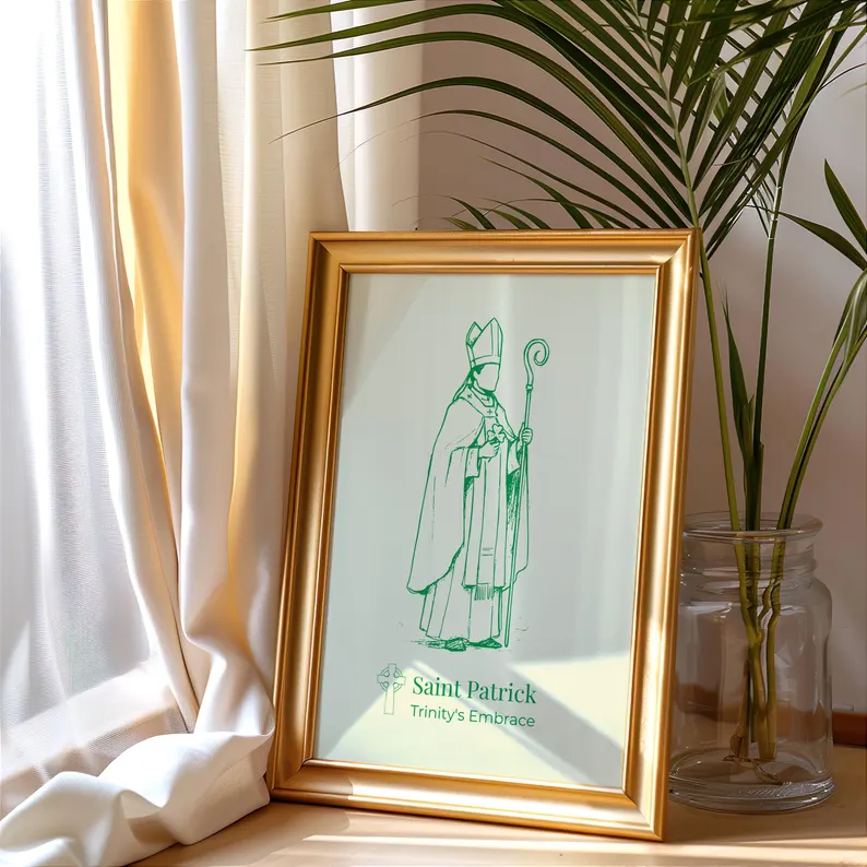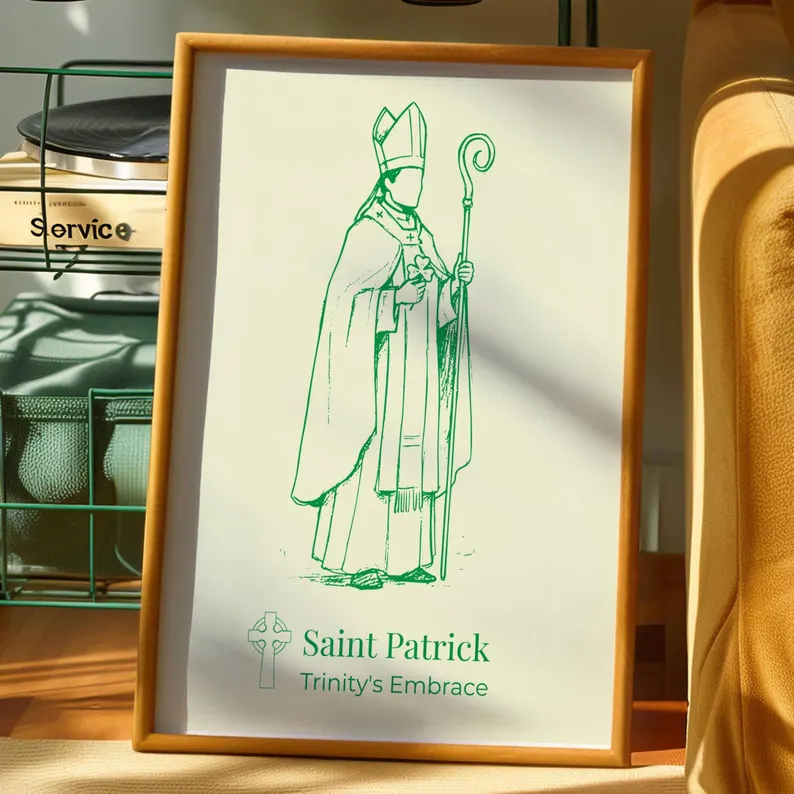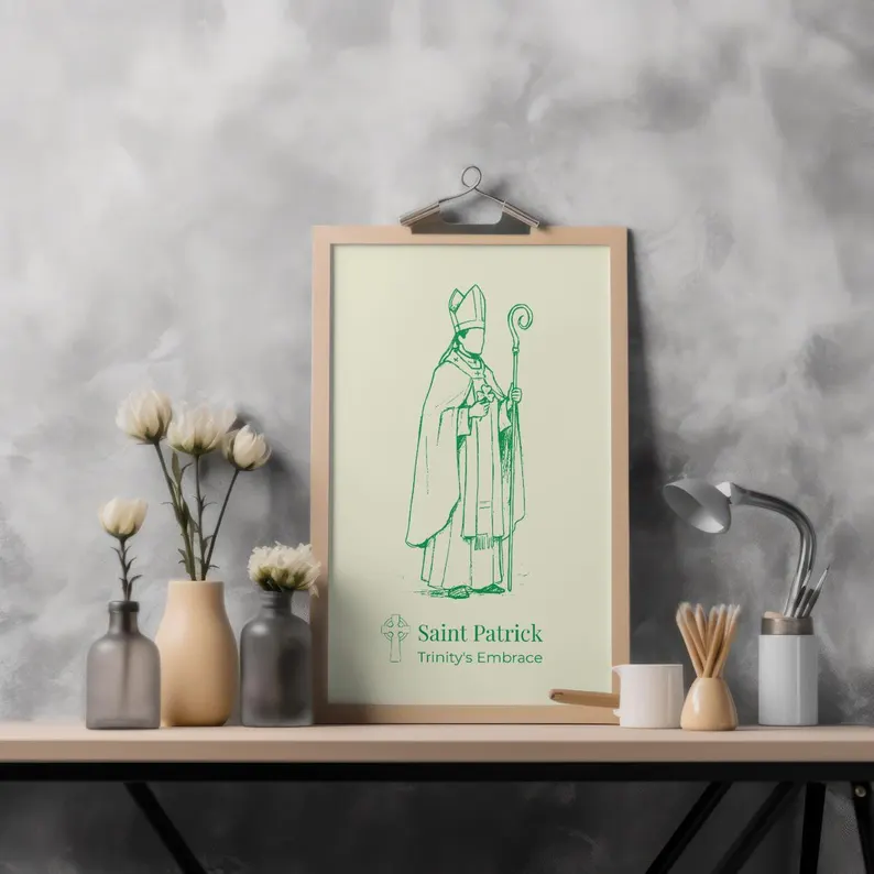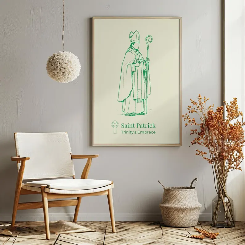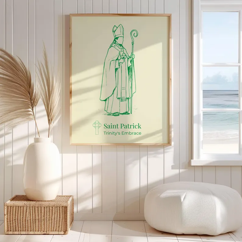 Este póster es una pieza decorativa significativa para cualquier hogar con herencia irlandesa o devoción a San Patricio. Sirve como un sutil recordatorio de fe y guía espiritual.