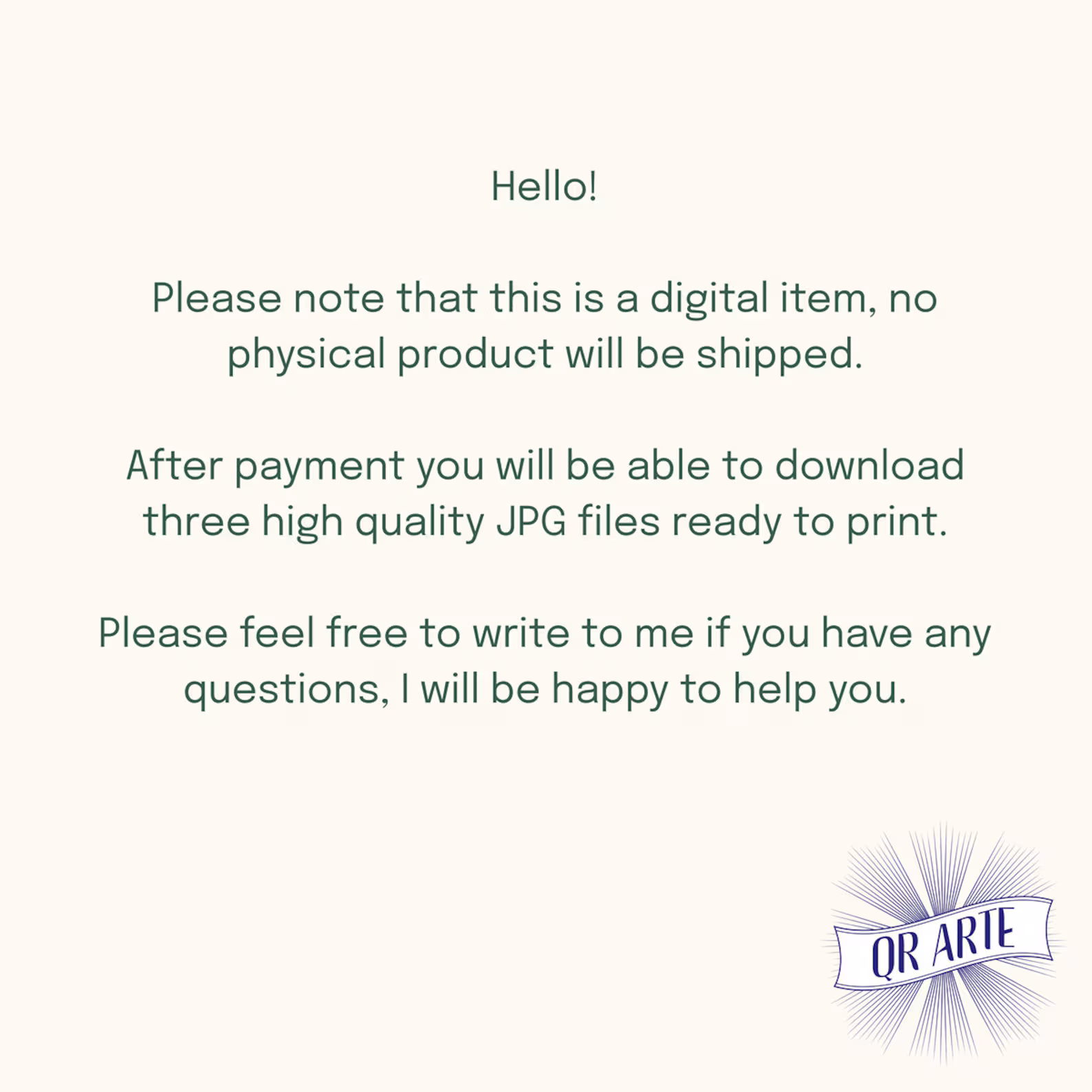– Tenga en cuenta que este es un producto digital para que el comprador lo imprima y enmarque como desee, no recibirá ningún artículo físico.