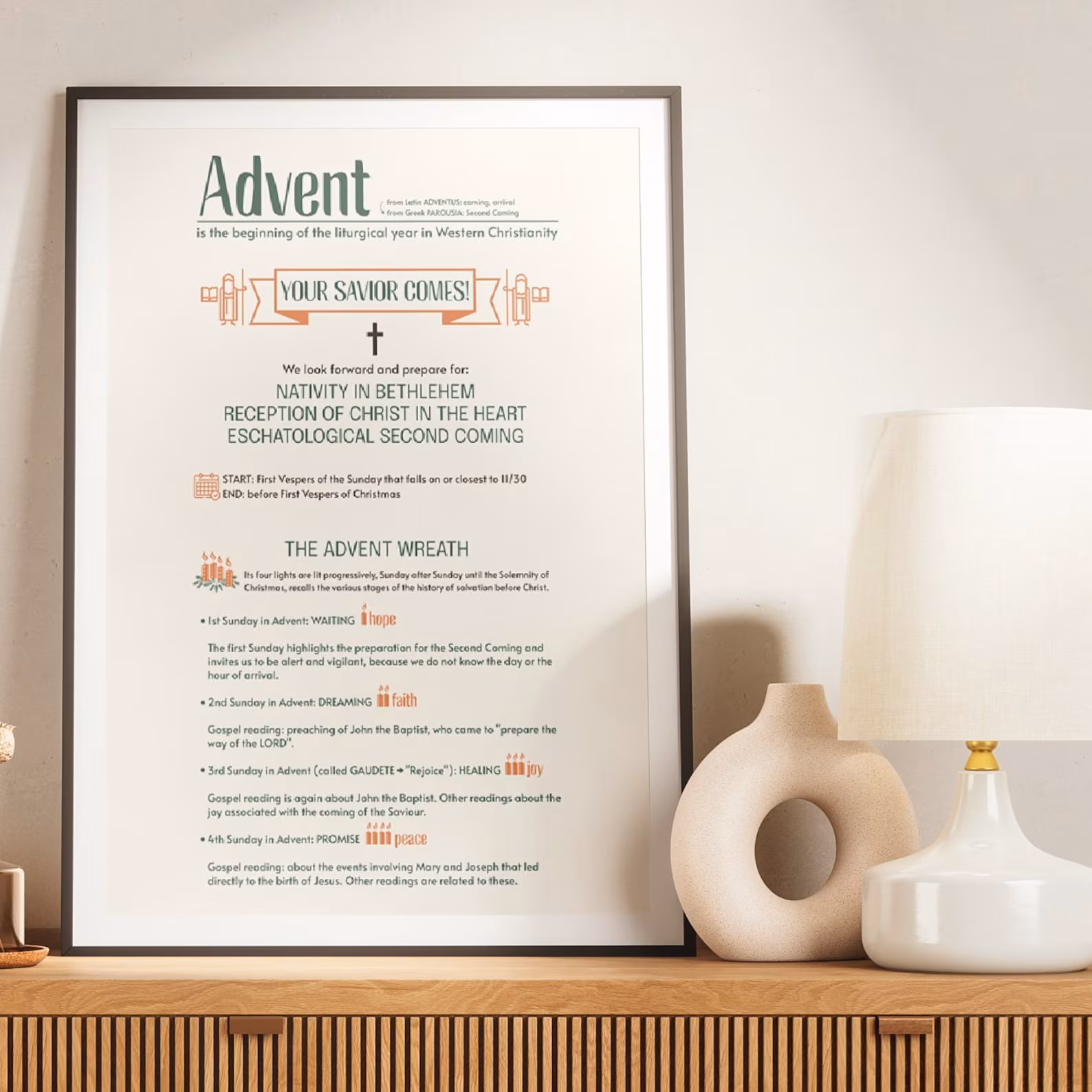 Póster cristiano de Adviento – Impresión infográfica educativa litúrgica