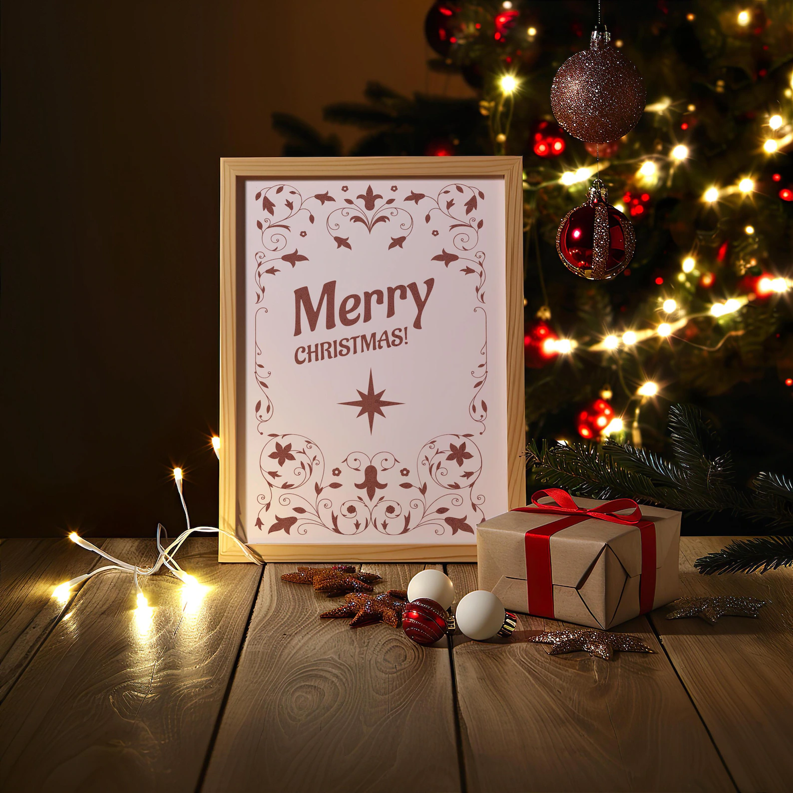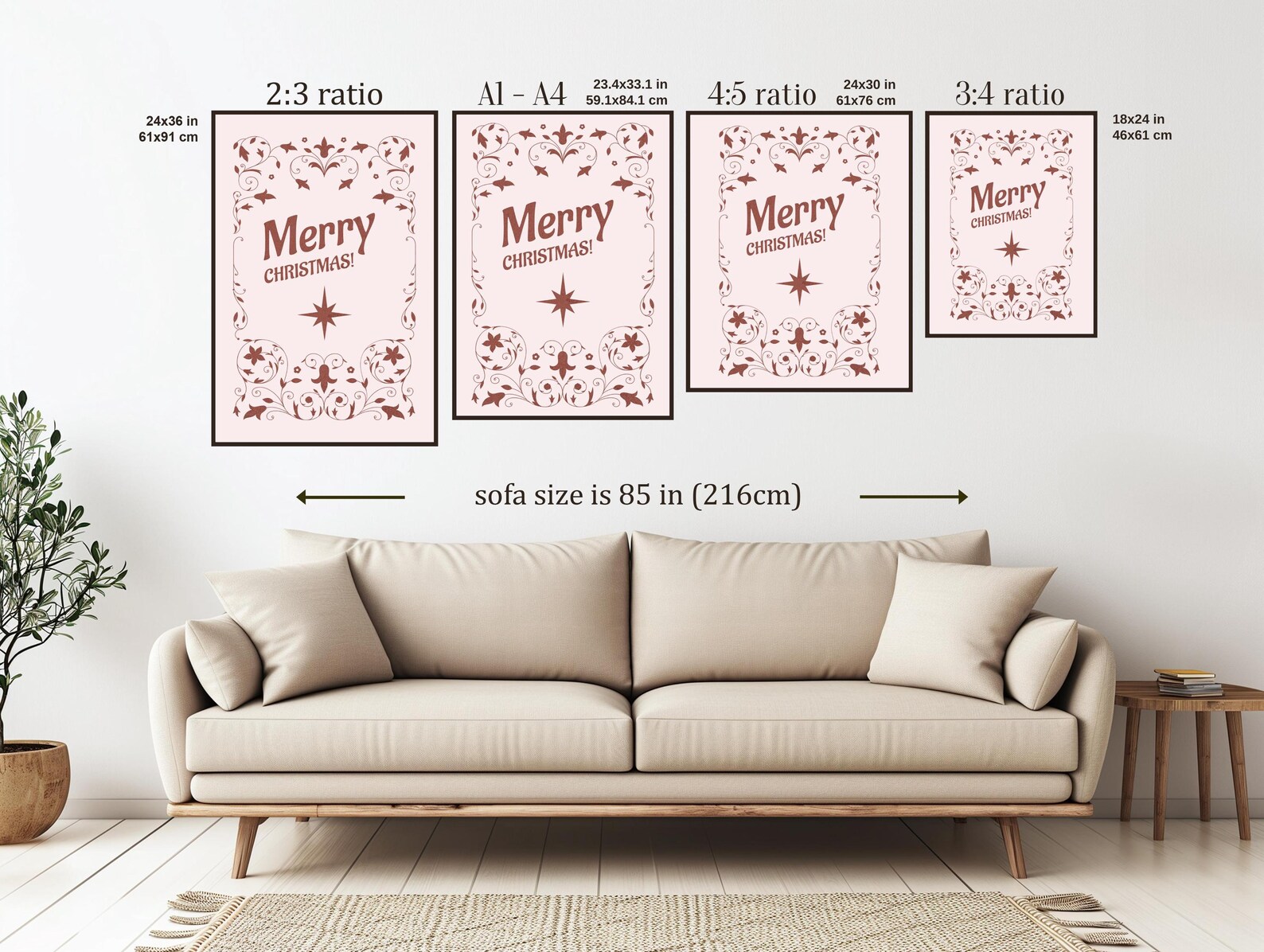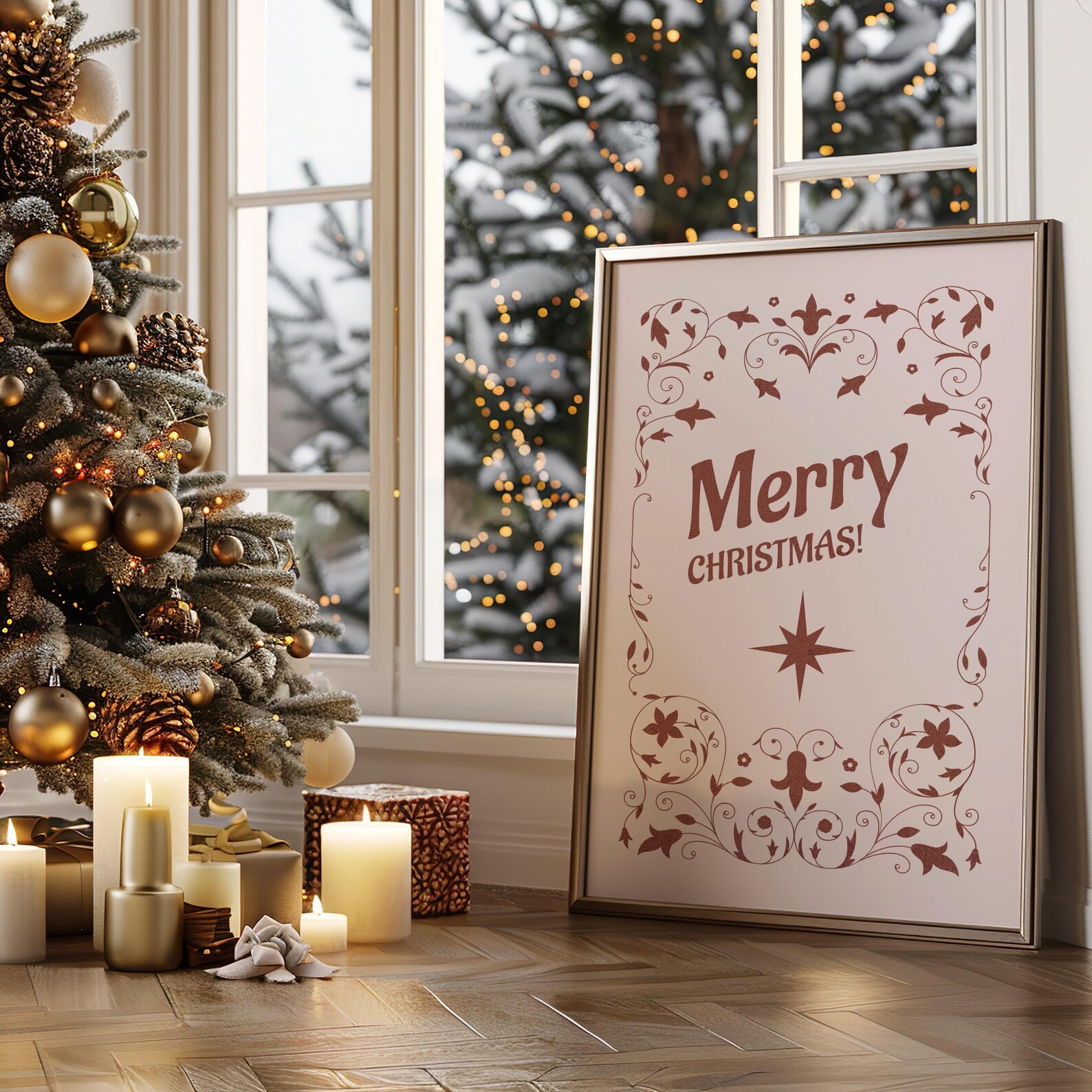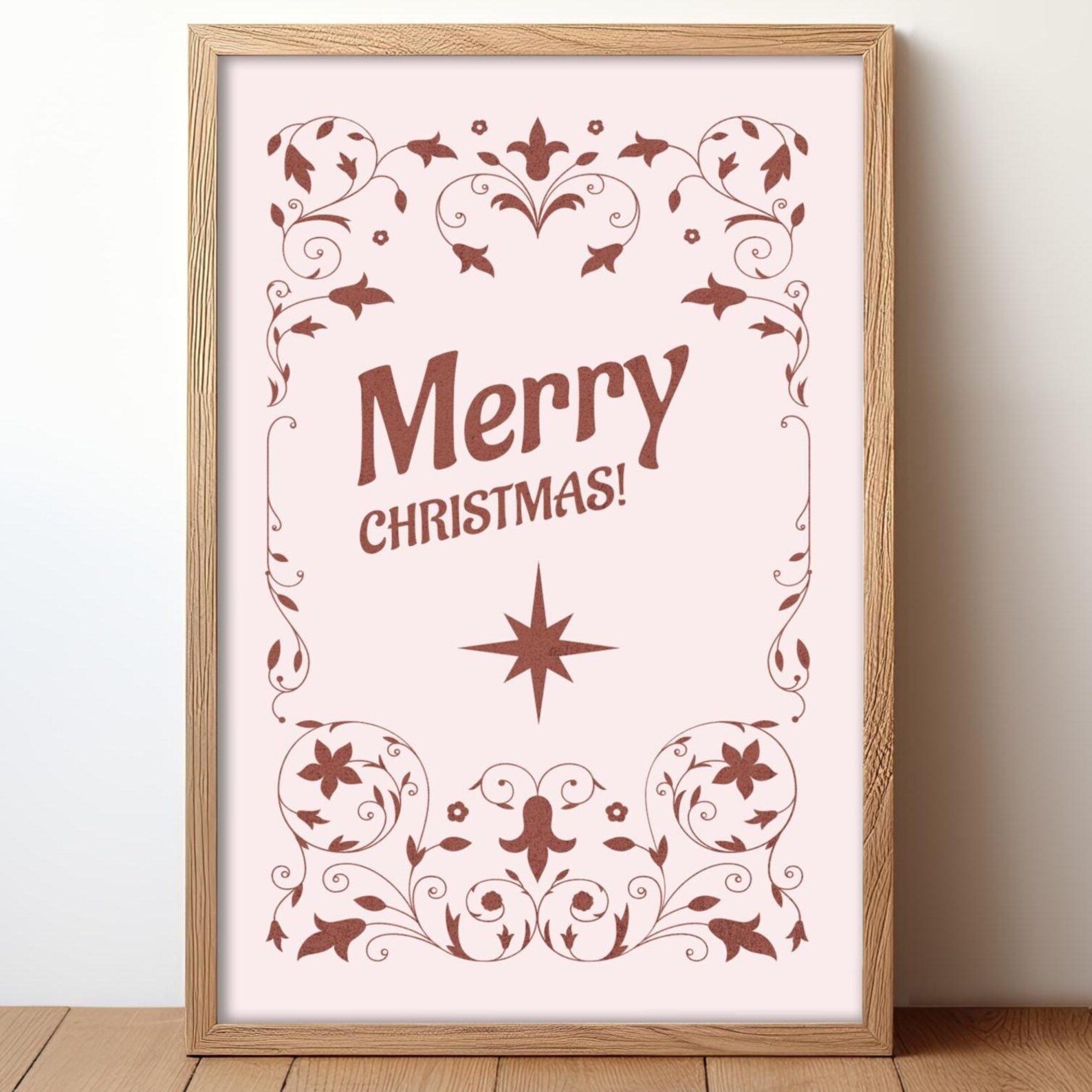 ☀︎ Un póster sencillo y delicado con el texto Feliz Navidad, perfecto para decorar tu pared favorita durante el período navideño.