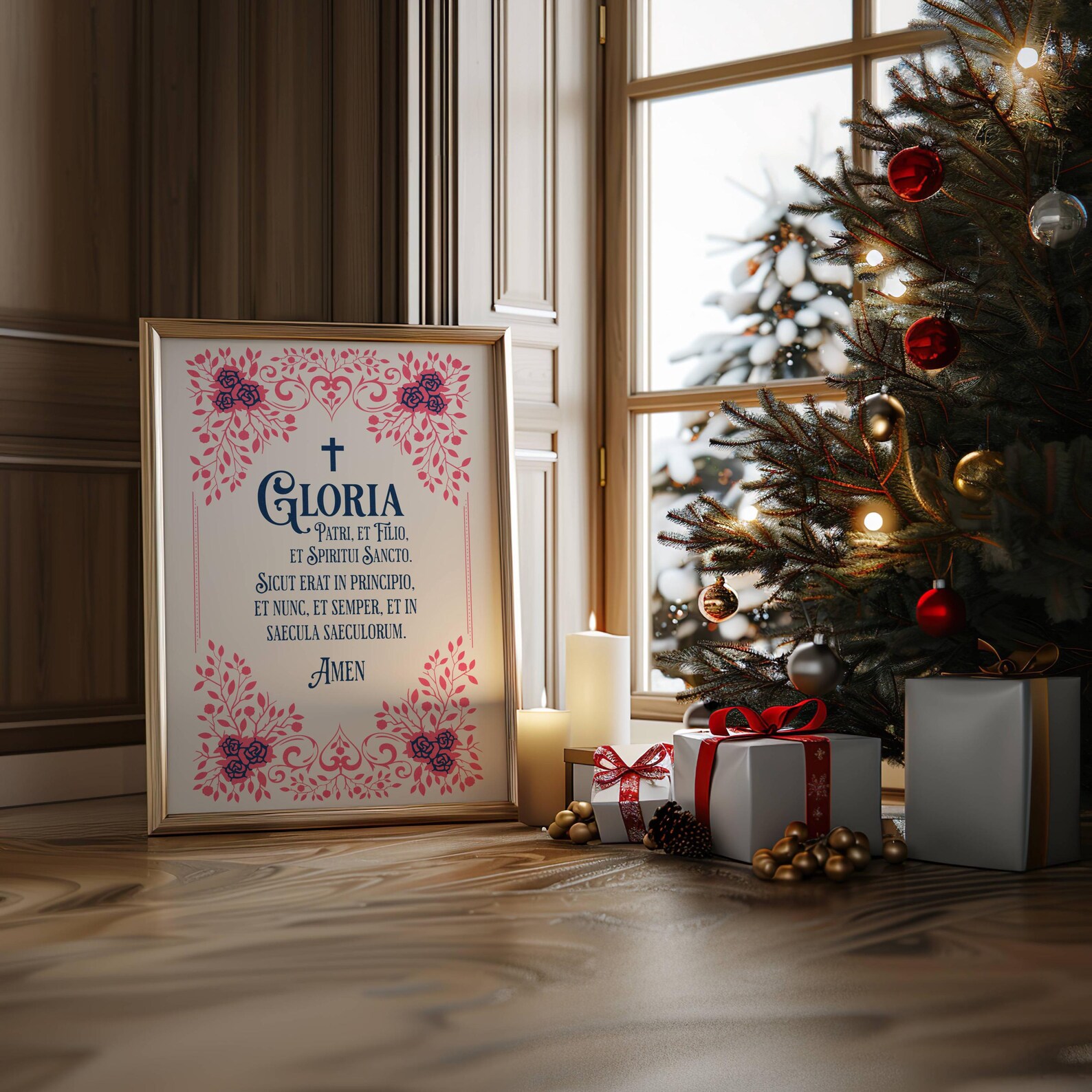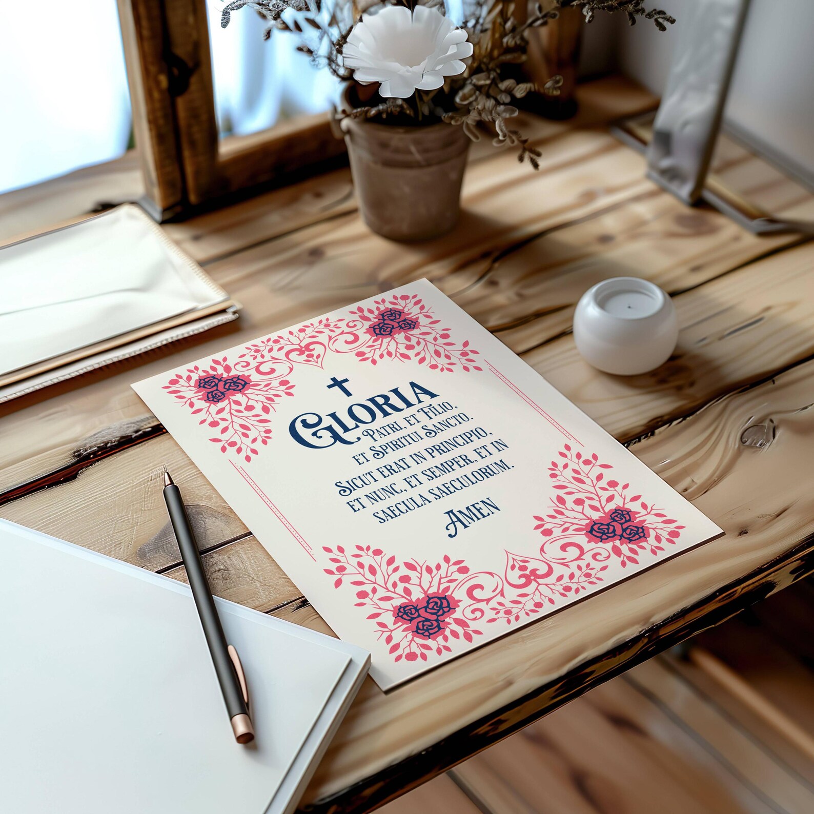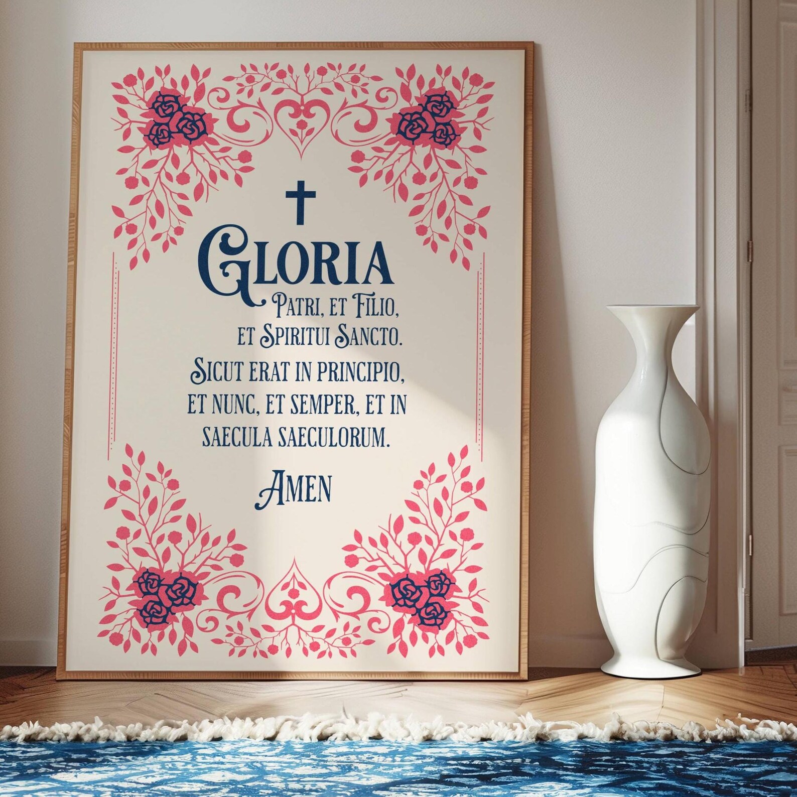 ☀︎ Impresión digital de alta resolución del Gloria Patri, o «Gloria al Padre», una oración fundamental en la tradición católica y cristiana.