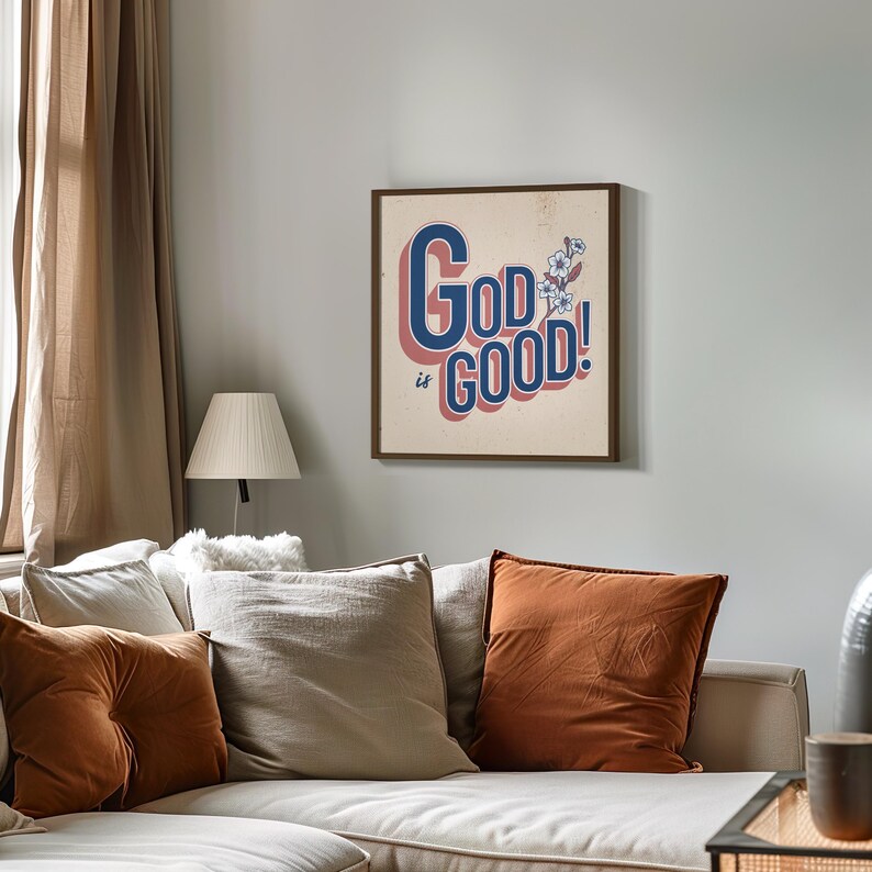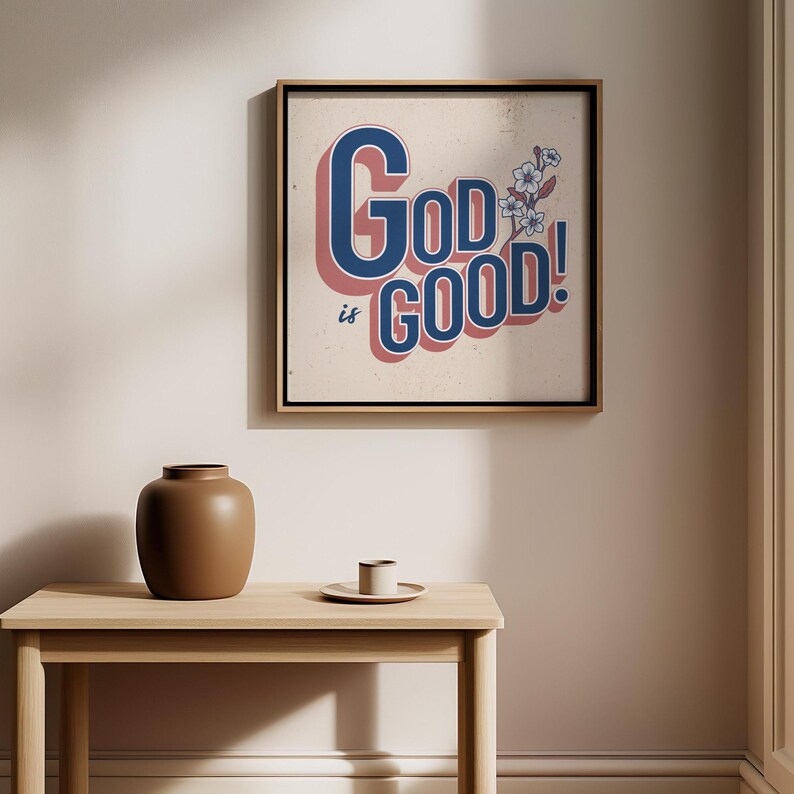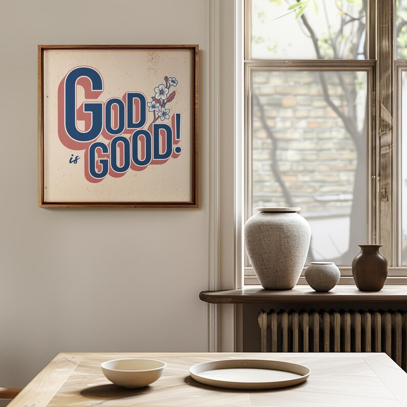 Póster «Dios es bueno» – Arte mural floral cristiano moderno