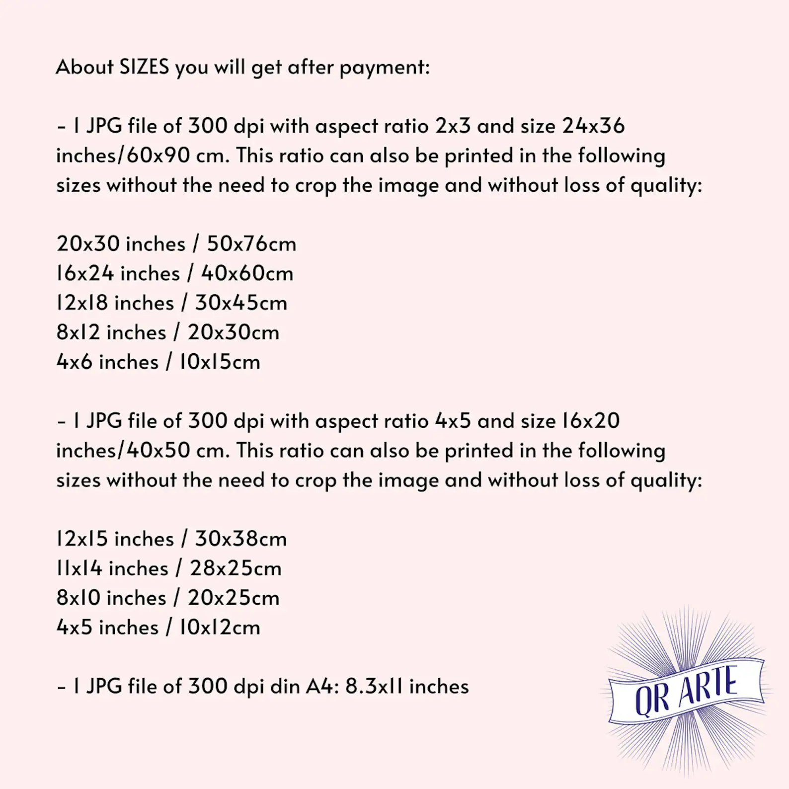 Tenga en cuenta que no recibirá ningún artículo físico, este es un producto digital que el comprador descarga y luego se encarga de imprimir y enmarcar si lo desea.