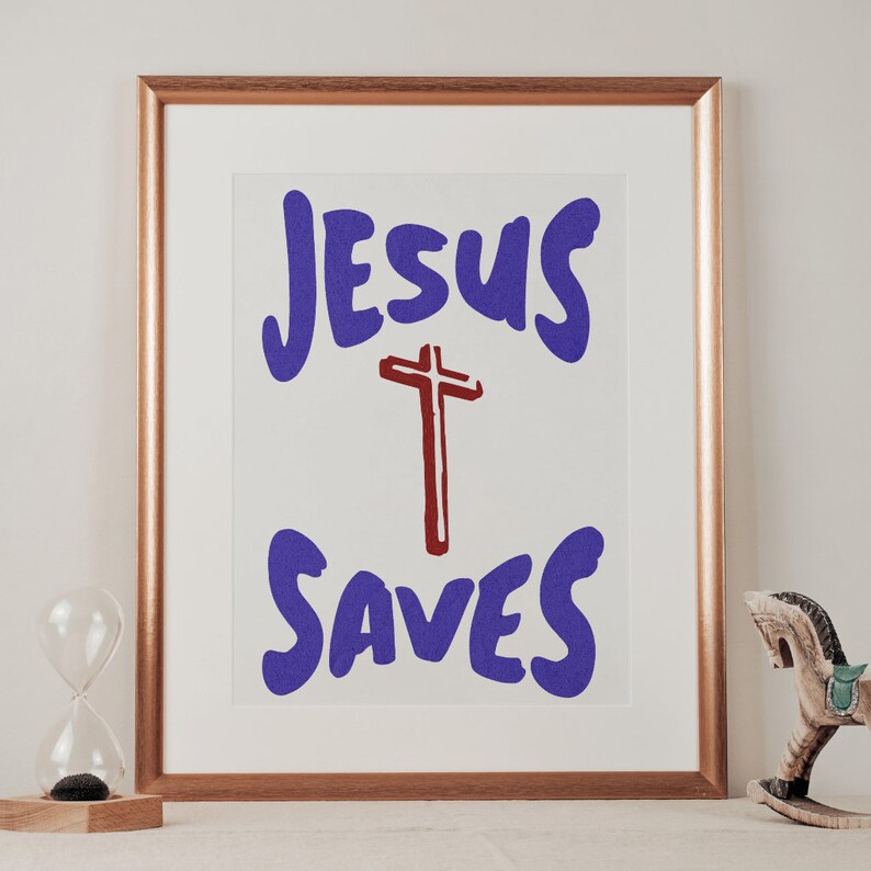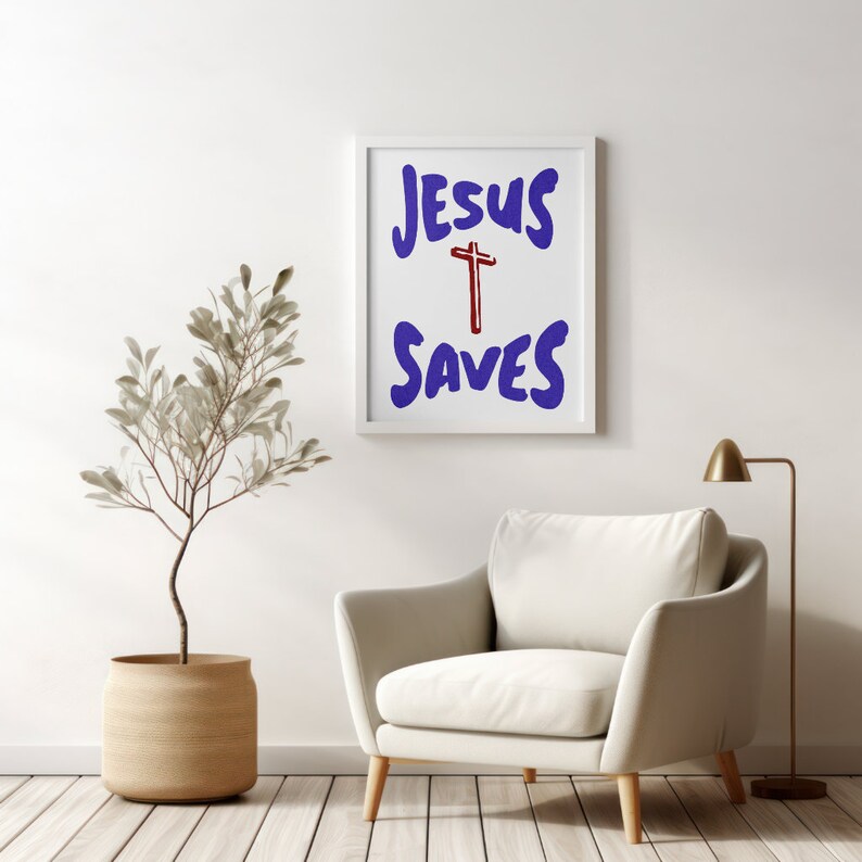 Póster «Jesús salva» – Arte mural cristiano moderno
